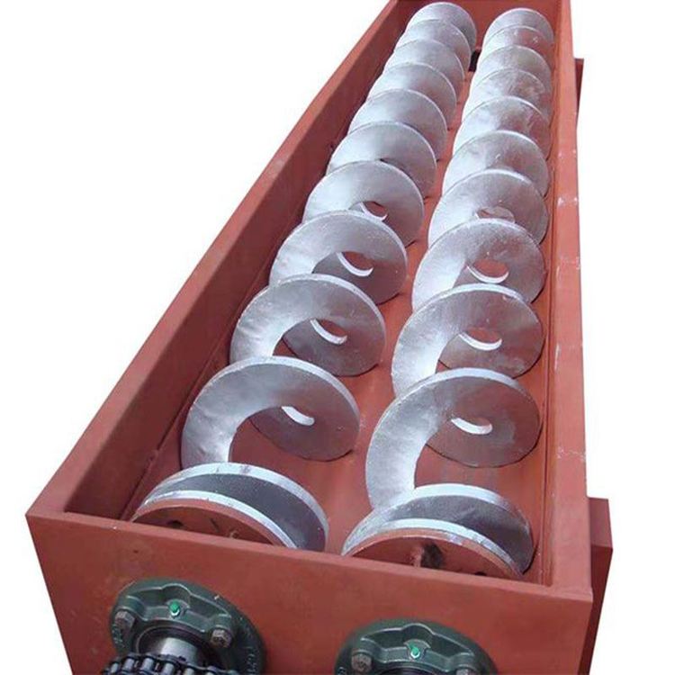 螺旋輸送機的工作原理是旋轉的螺旋葉片將物料推移而進行螺旋輸送機輸送,使物料不與螺旋輸送機葉片一起旋轉的力是物料自身重量和螺旋輸送機機殼對物料的摩擦阻力。螺旋輸送機旋轉軸上焊的螺旋葉片,葉片的麵型根據輸送物料的不同有實體麵型、帶式麵型、葉片麵型等型式。螺旋輸送機的螺旋軸在物料運動方向的終端有止推軸承以隨物料給螺旋的軸向反力,在機長較長時,應加中間吊掛軸承。